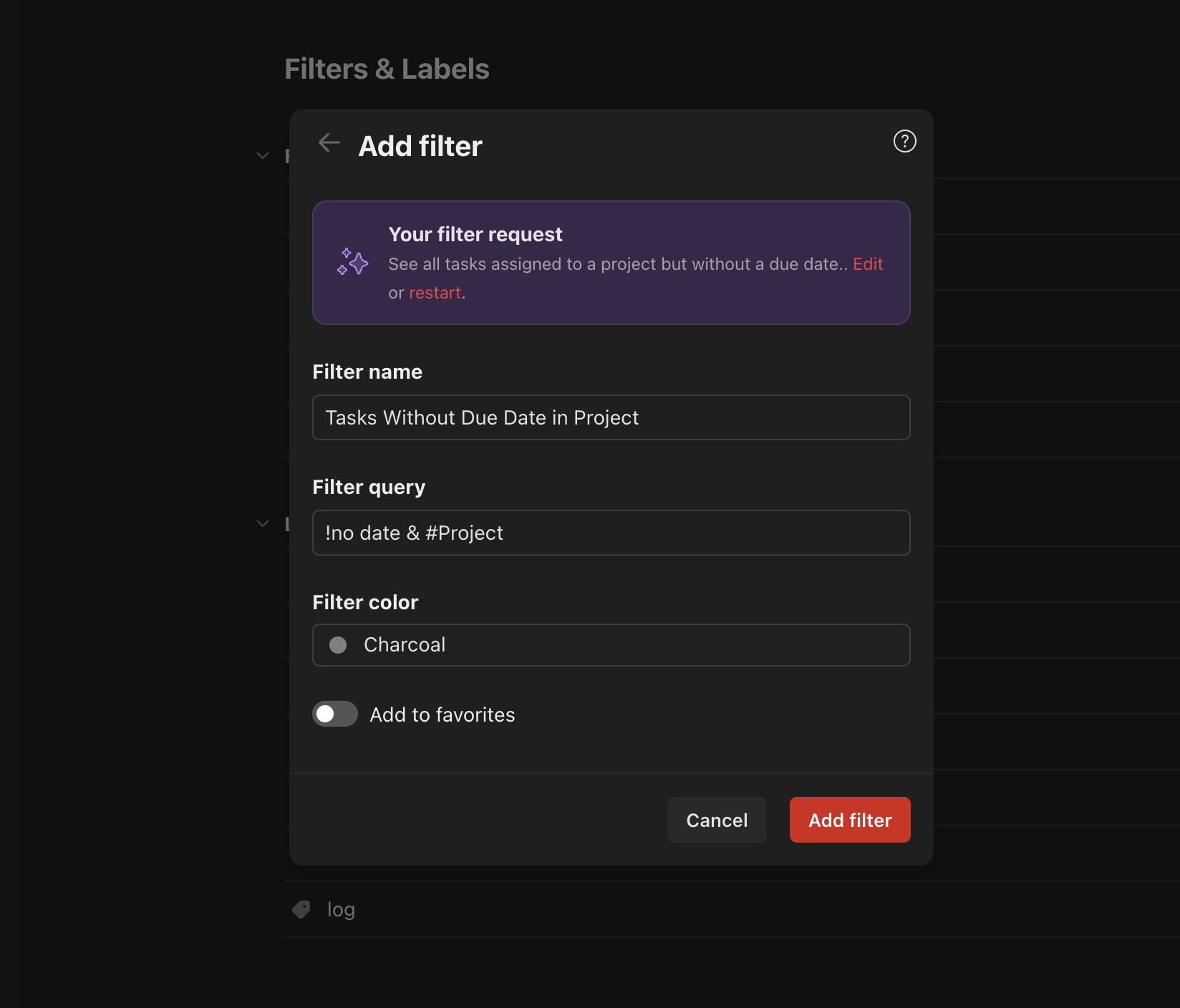 The first one is from Todoist, a task planner and one of my favourite products. They enabled users to filter with a natural-language request without having to use a complex and hard-to-learn query language. Here's a demo.